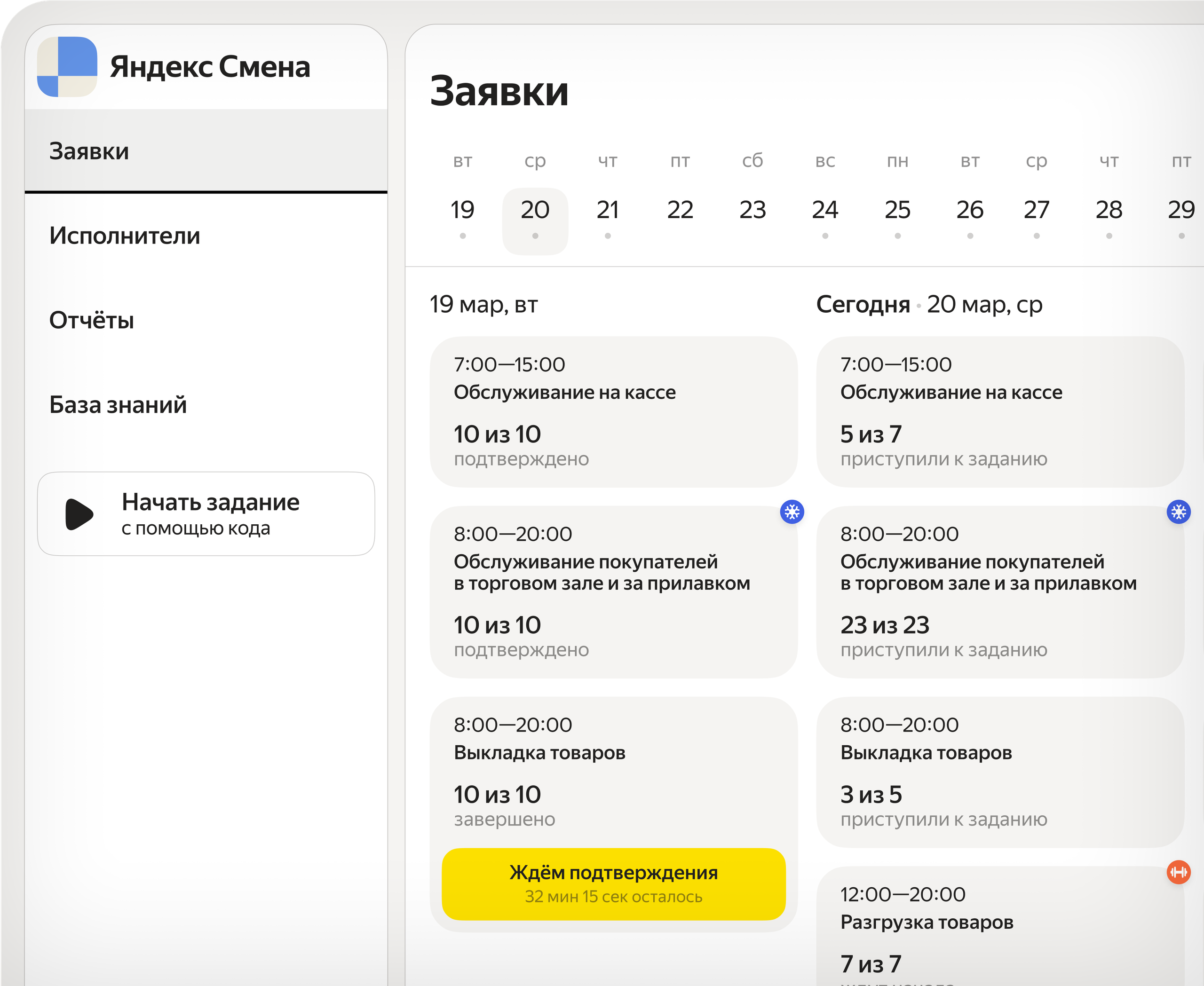 Яндекс Смена — информационный сервис. Услуги оказываются партнёрами сервиса. Термин «смена» в наименовании сервиса означает заявку на услуги исполнителей. Сроки и размер выплат могут отличаться от указанных. Чтобы узнать подробности, оставьте заявку. 0+